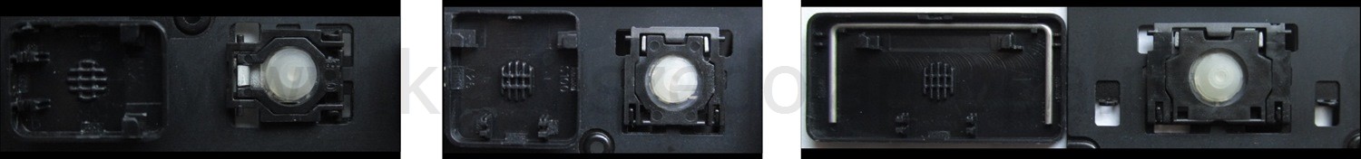 - Чтобы выбрать правильную модель, сравните фото пустого места на вашей клавиатуре с фото ниже или снимите клавишу «A» – под ней всегда средний зажим.