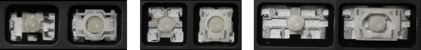 - В большинстве клавиатур, которые выглядят одинаково снаружи, использовались разные типы креплений под клавишами.
