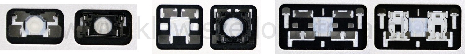 - Чтобы выбрать правильную модель, сравните фото пустого места на вашей клавиатуре с фото ниже или снимите клавишу «A» – под ней всегда средний зажим.