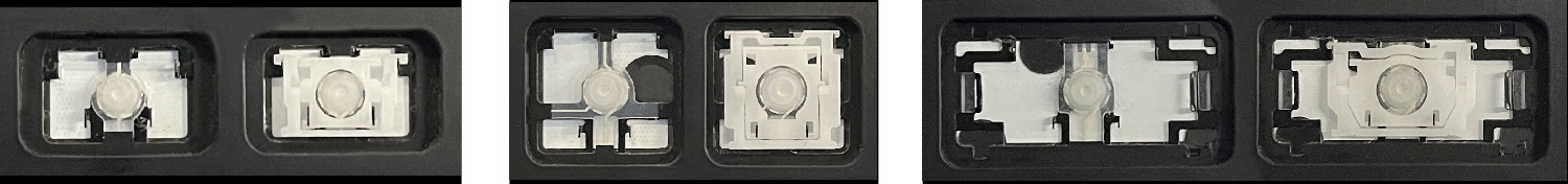 - В большинстве клавиатур, которые выглядят одинаково снаружи, использовались разные типы креплений под клавишами.