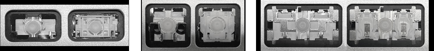 - Чтобы выбрать правильную модель, сравните фото пустого места на вашей клавиатуре с фото ниже или снимите клавишу «A» – под ней всегда средний зажим.