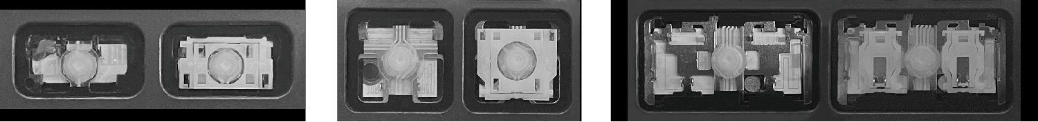 - В большинстве клавиатур, которые выглядят одинаково снаружи, использовались разные типы креплений под клавишами.