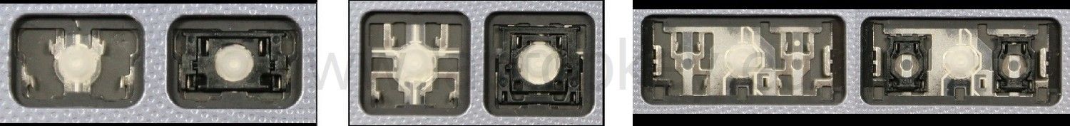 - В большинстве клавиатур, которые выглядят одинаково снаружи, использовались разные типы креплений под клавишами.