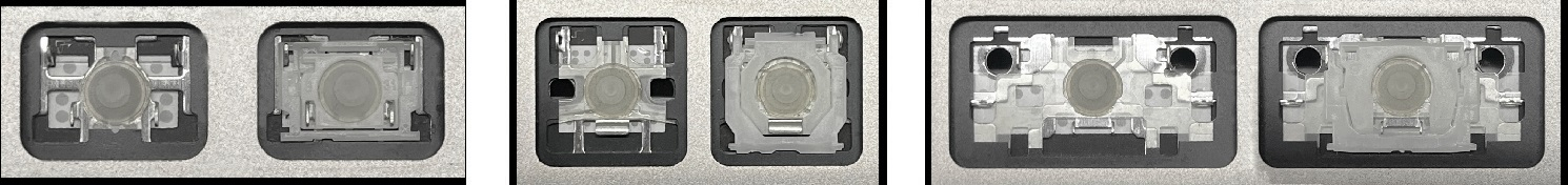 - В большинстве клавиатур, которые выглядят одинаково снаружи, использовались разные типы креплений под клавишами.