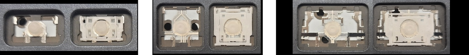 - В большинстве клавиатур, которые выглядят одинаково снаружи, использовались разные типы креплений под клавишами.