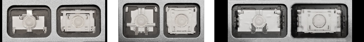 - В большинстве клавиатур, которые выглядят одинаково снаружи, использовались разные типы креплений под клавишами.
