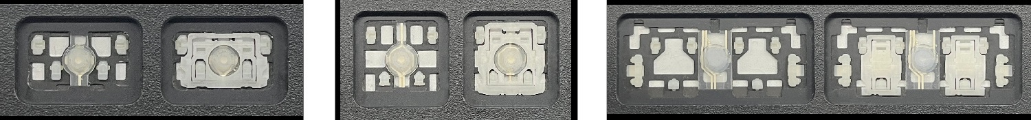 - В большинстве клавиатур, которые выглядят одинаково снаружи, использовались разные типы креплений под клавишами.