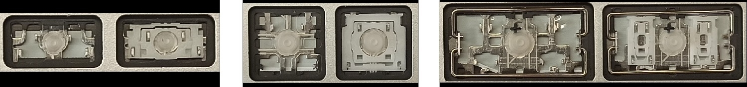 - В большинстве клавиатур, которые выглядят одинаково снаружи, использовались разные типы креплений под клавишами.