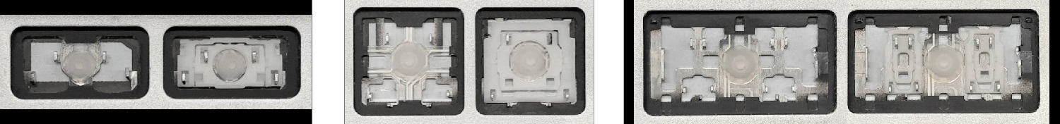 - В большинстве клавиатур, которые выглядят одинаково снаружи, использовались разные типы креплений под клавишами.