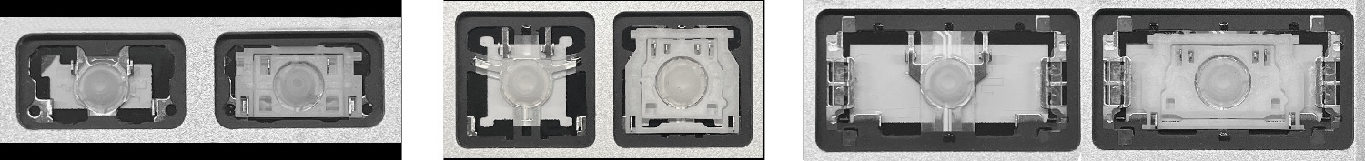 - В большинстве клавиатур, которые выглядят одинаково снаружи, использовались разные типы креплений под клавишами.