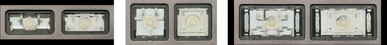 - В большинстве клавиатур, которые выглядят одинаково снаружи, использовались разные типы креплений под клавишами.