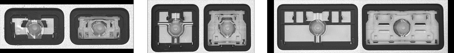 - Чтобы выбрать правильную модель, сравните фото пустого места на вашей клавиатуре с фото ниже или снимите клавишу «A» – под ней всегда средний зажим.