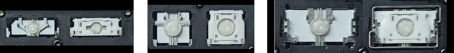- В большинстве клавиатур, которые выглядят одинаково снаружи, использовались разные типы креплений под клавишами.