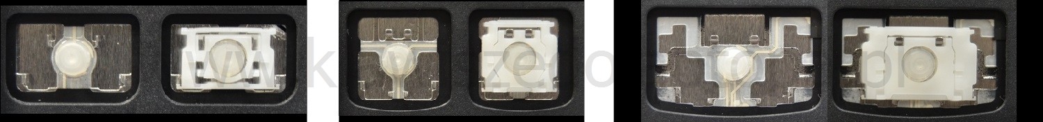 - В большинстве клавиатур, которые выглядят одинаково снаружи, использовались разные типы креплений под клавишами.