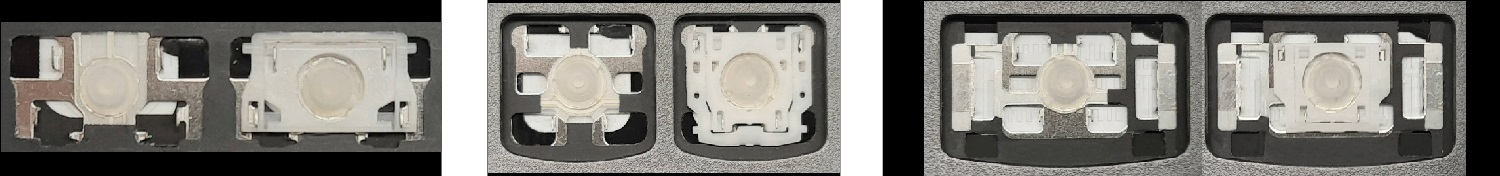 - В большинстве клавиатур, которые выглядят одинаково снаружи, использовались разные типы креплений под клавишами.