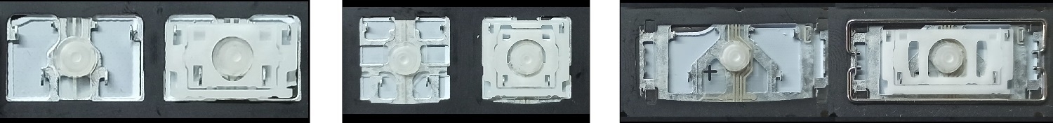 - В большинстве клавиатур, которые выглядят одинаково снаружи, использовались разные типы креплений под клавишами.