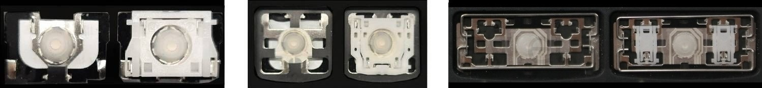 - В большинстве клавиатур, которые выглядят одинаково снаружи, использовались разные типы креплений под клавишами.